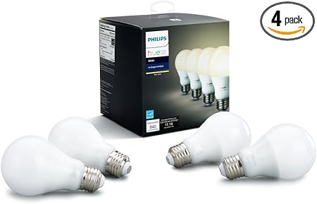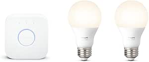 for "Philips Hue Philips 455295 White A19 Single Led Bulb, Works With Amazon Alexa (Hue Bridge Required) : Philips Hue White A19 60w Equivalent Smart Bulb Starter Kit 2 A19 60w White Bulbs And 1 Hub Compatible With Amazon Alexa Apple Homekit And Google Assistant Amazon Com"